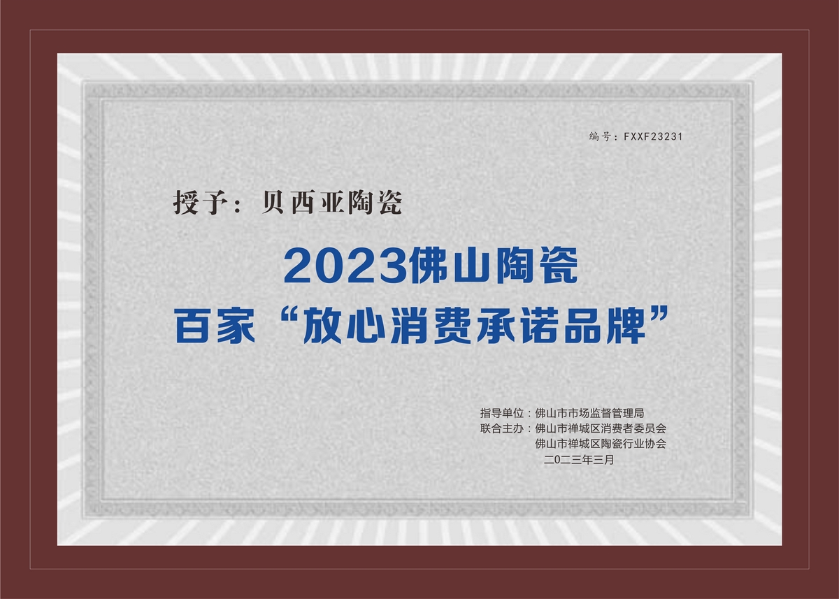 公司產品規格齊全,品類和配套完善,為消費者一站式采購墻地磚主材提供了極大的便利。憑借“品質穩定、技術創新、品類多樣、性價比高”的四大優勢,貝西亞陶瓷先后獲得行業“陶瓷十大品牌、瓷磚十大品牌、負離子大理石十大品牌、陶瓷十大創新品牌和現代磚十大品牌”等殊榮,經銷網絡遍布全國大中型城市,產品遠銷國內外,是深受國內外客戶信賴致力打造具有高端、藝術及時尚的輕奢品牌。