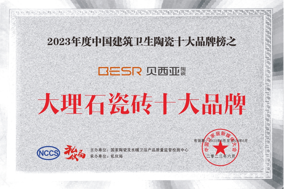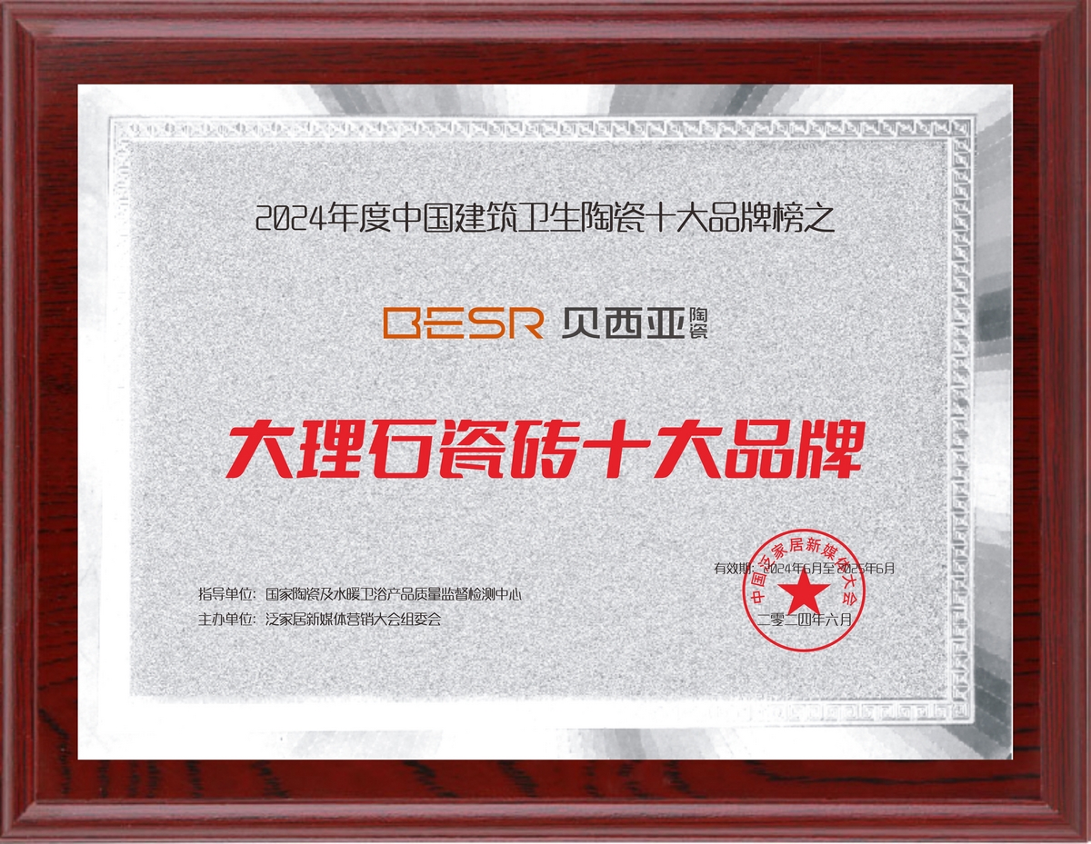 貝西亞陶瓷先后獲得行業“陶瓷十大品牌、瓷磚十大品牌、負離子大理石十大品牌、陶瓷十大創新品牌和現代磚十大品牌”等殊榮,經銷網絡遍布全國大中型城市,產品遠銷國內外,是深受國內外客戶信賴致力打造具有高端、藝術及時尚的輕奢品牌。